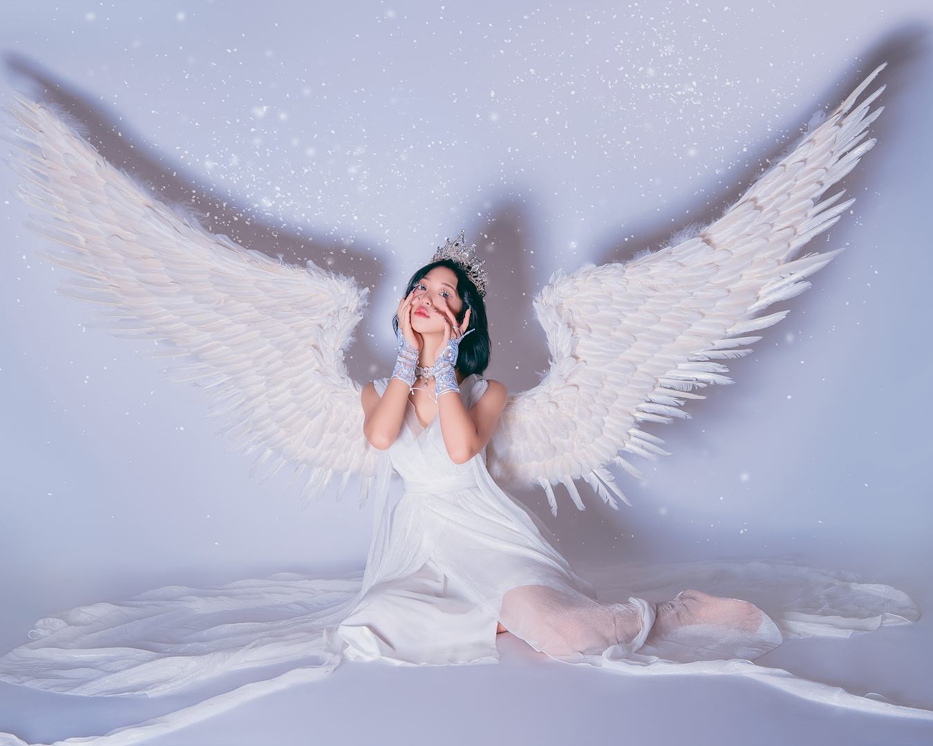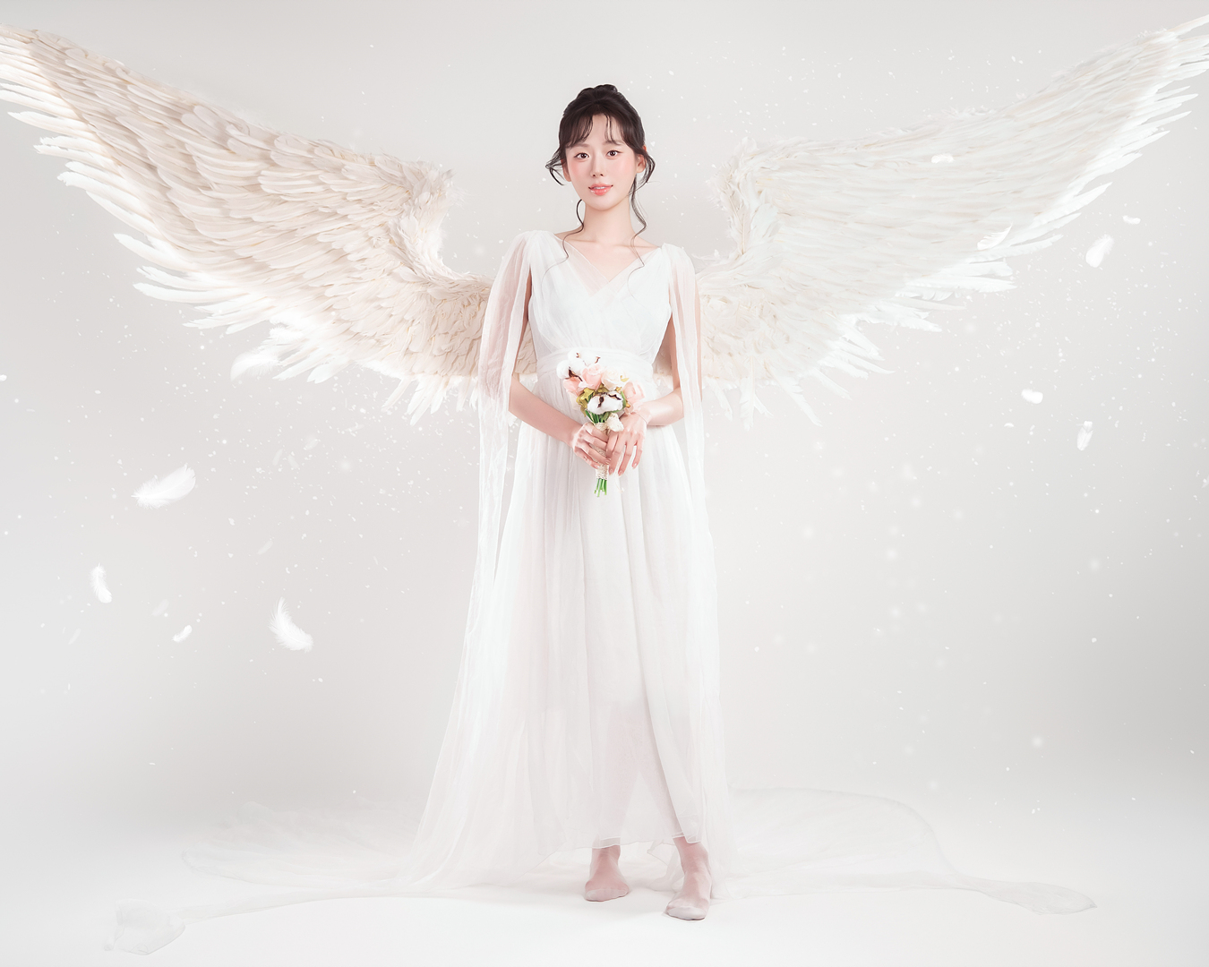 블랙과 화이트 날개를 직접 착용하여 배경지에서 촬영하는 컨셉입니다.