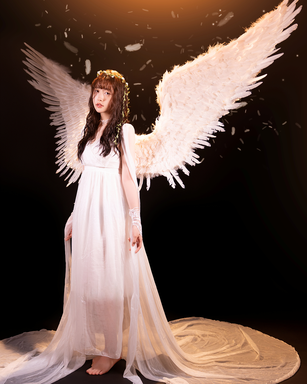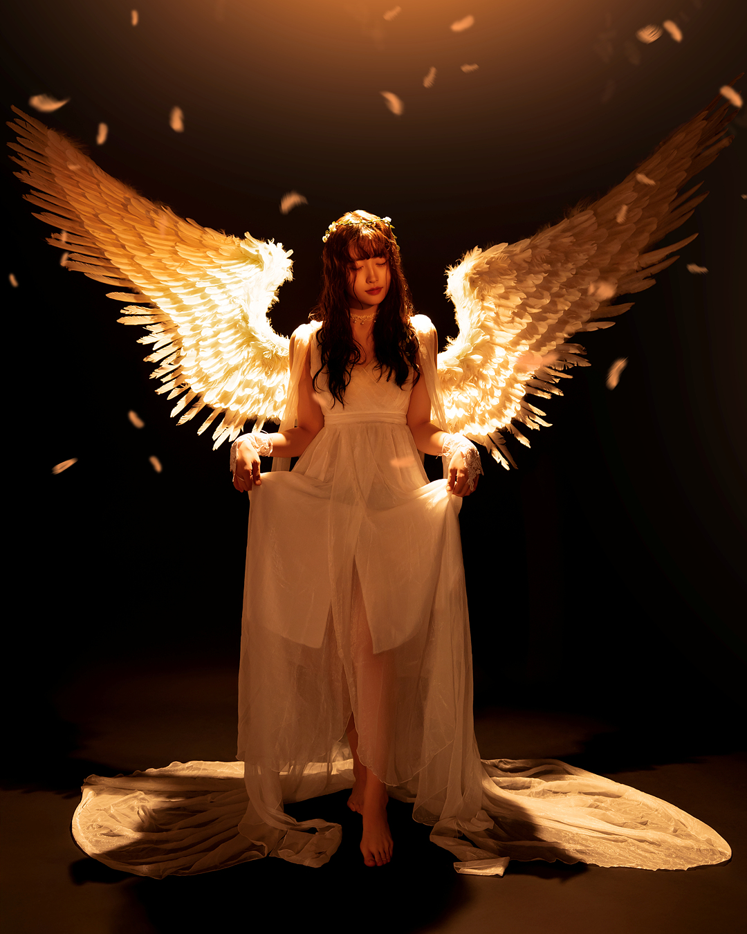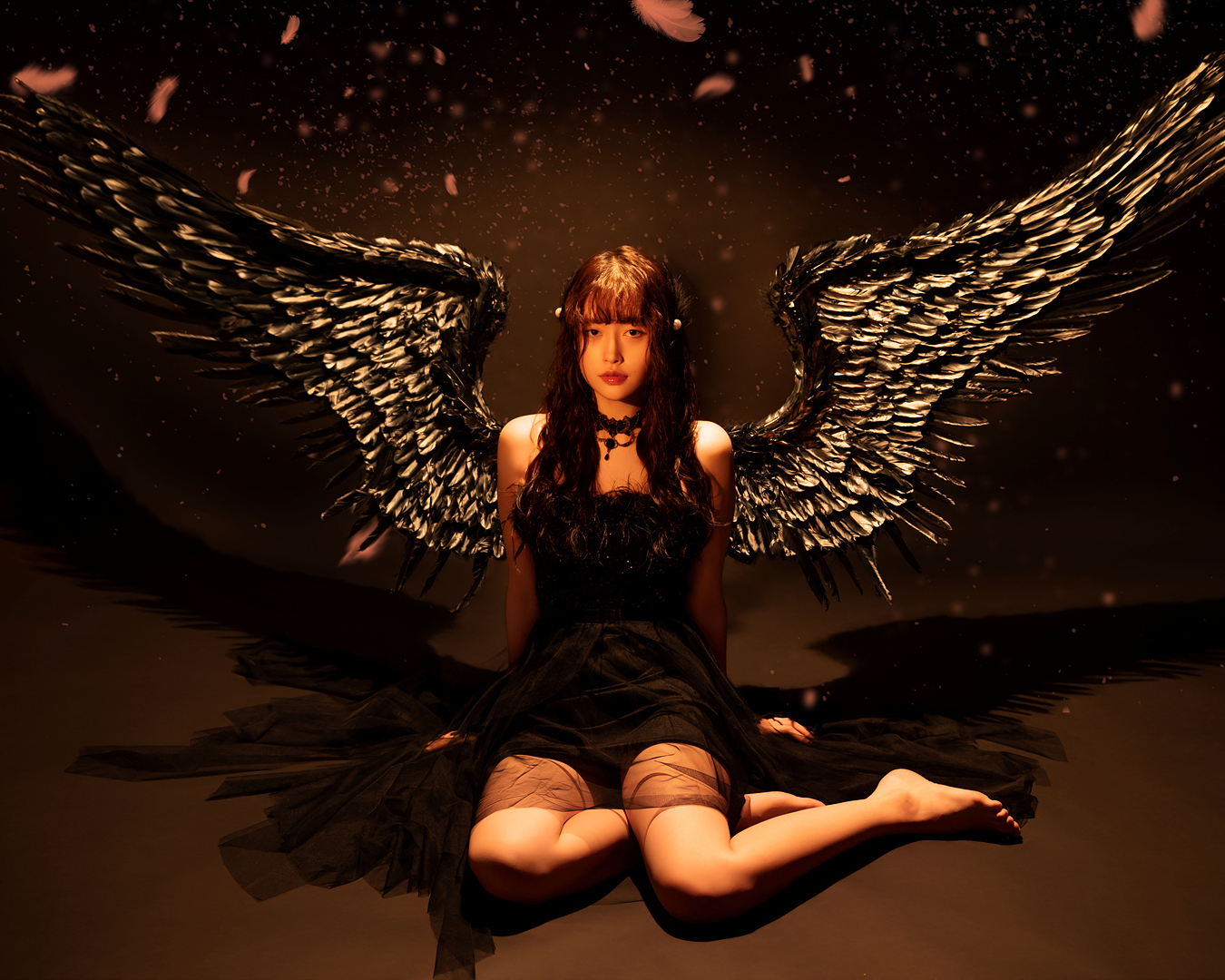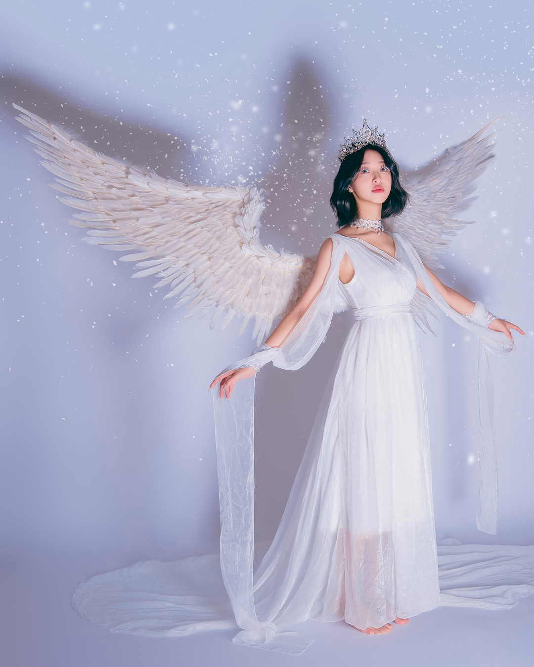블랙과 화이트 날개를 직접 착용하여 배경지에서 촬영하는 컨셉입니다.