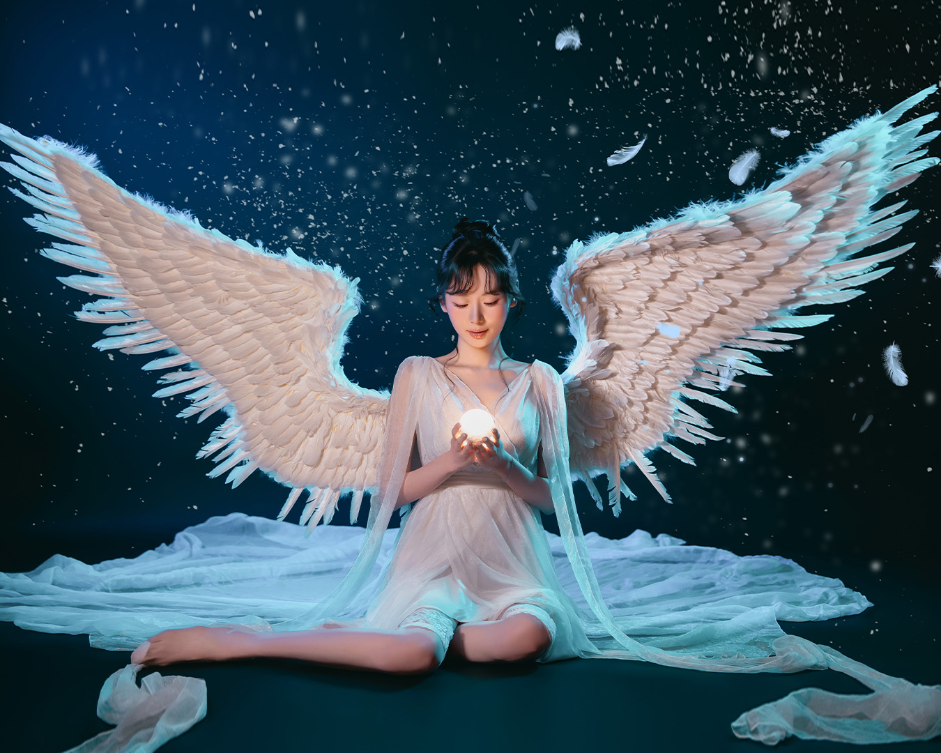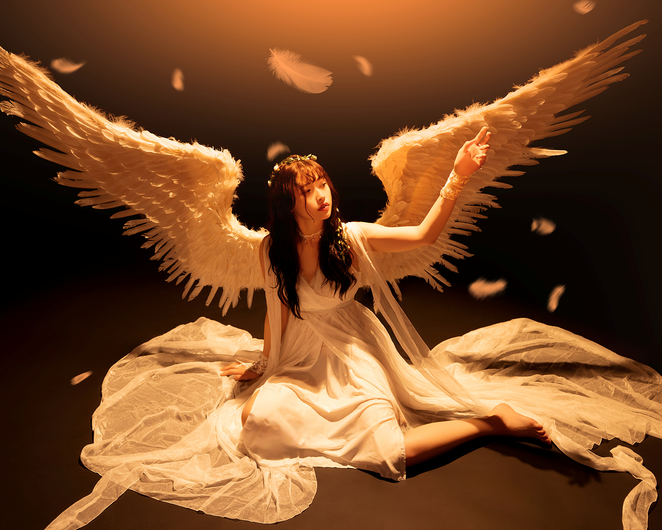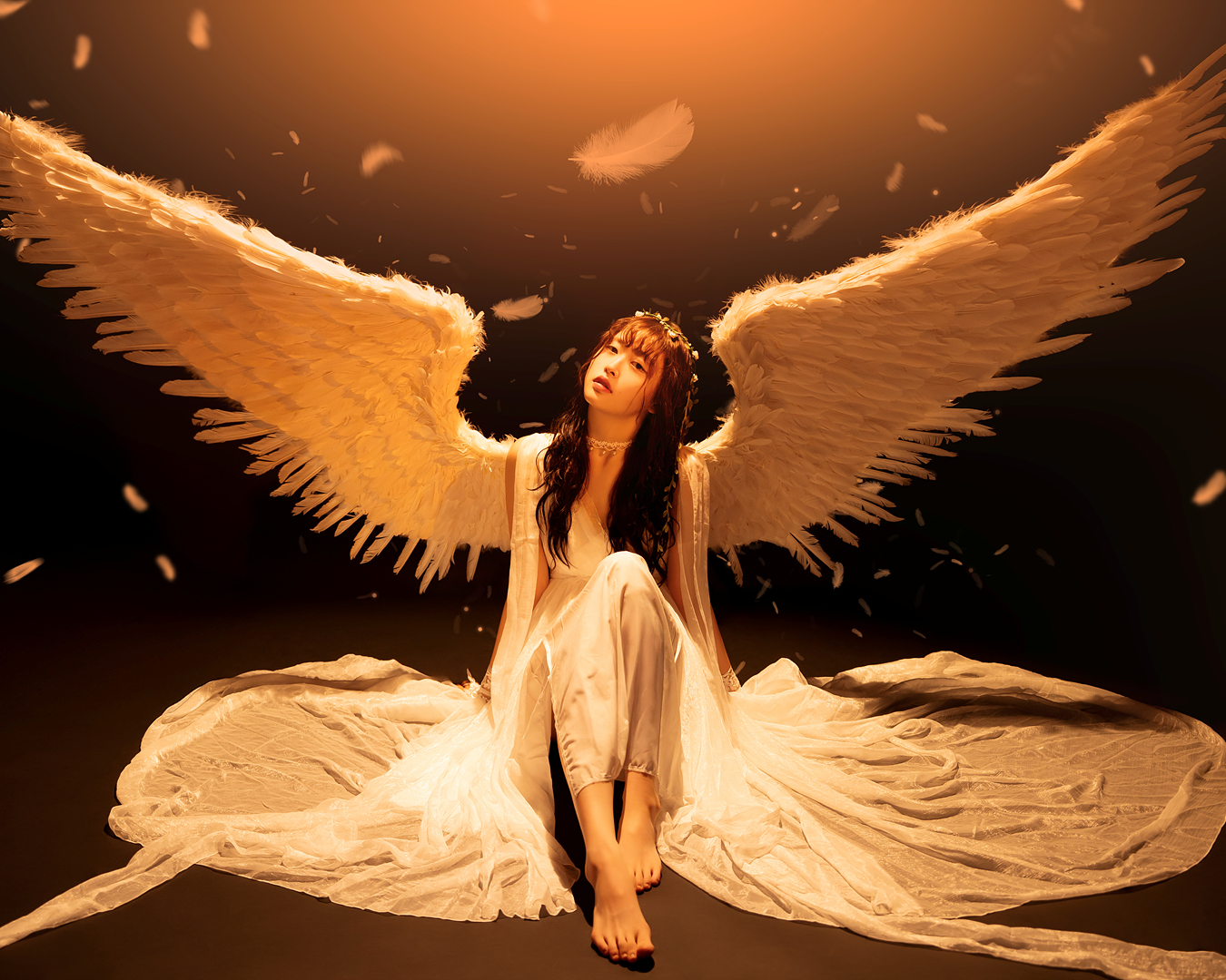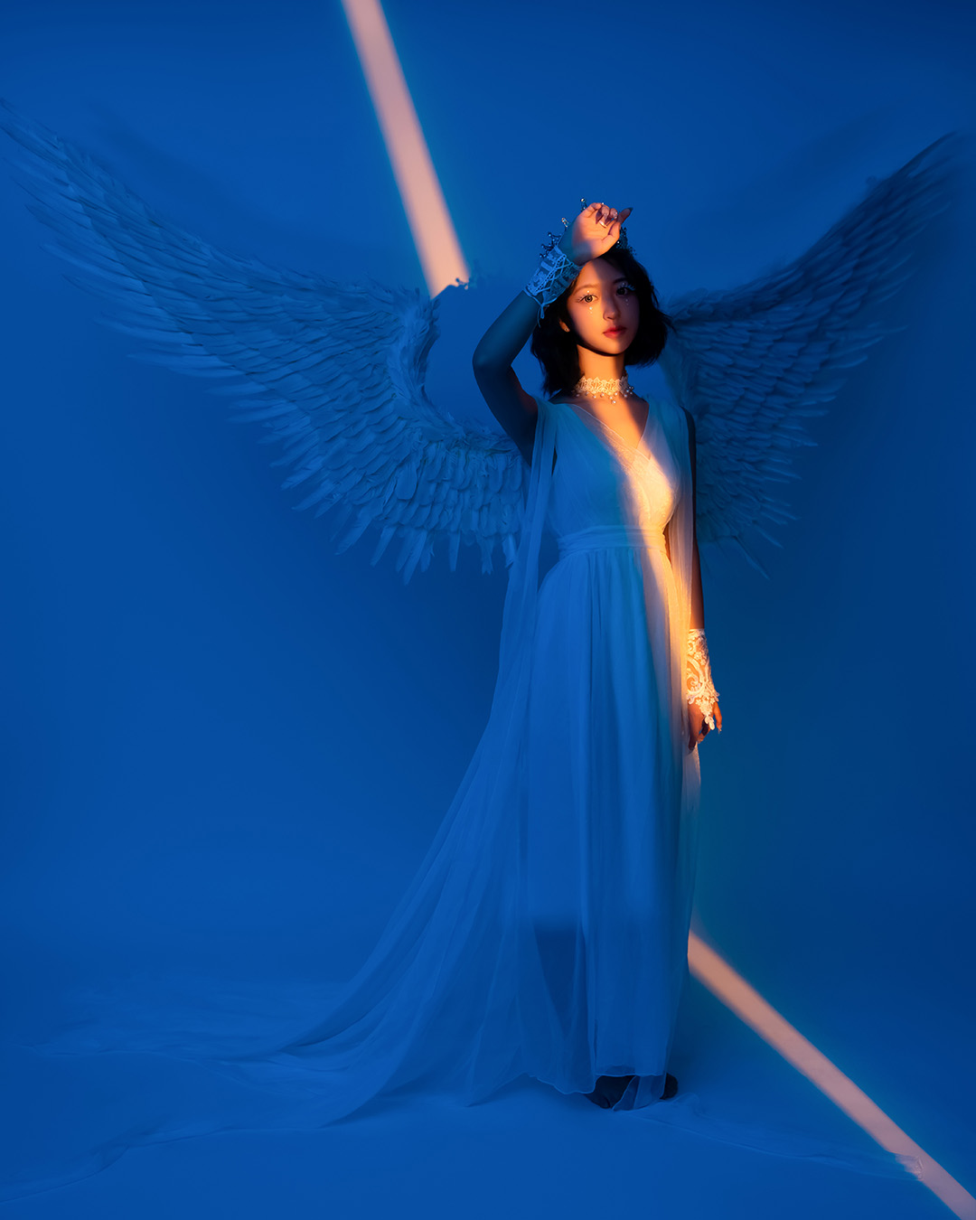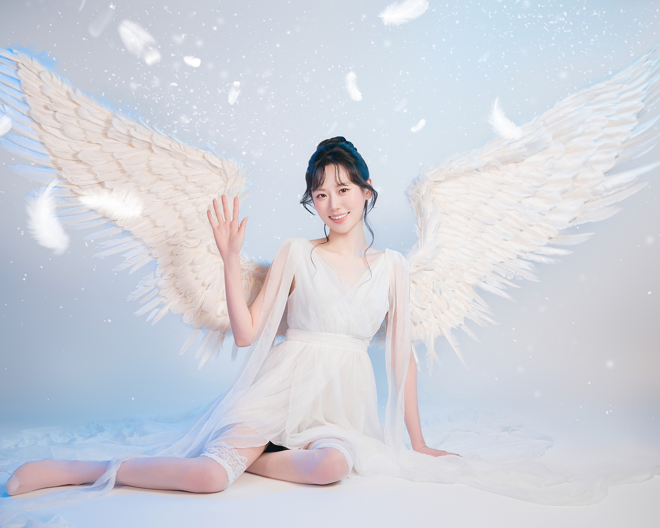블랙과 화이트 날개를 직접 착용하여 배경지에서 촬영하는 컨셉입니다.